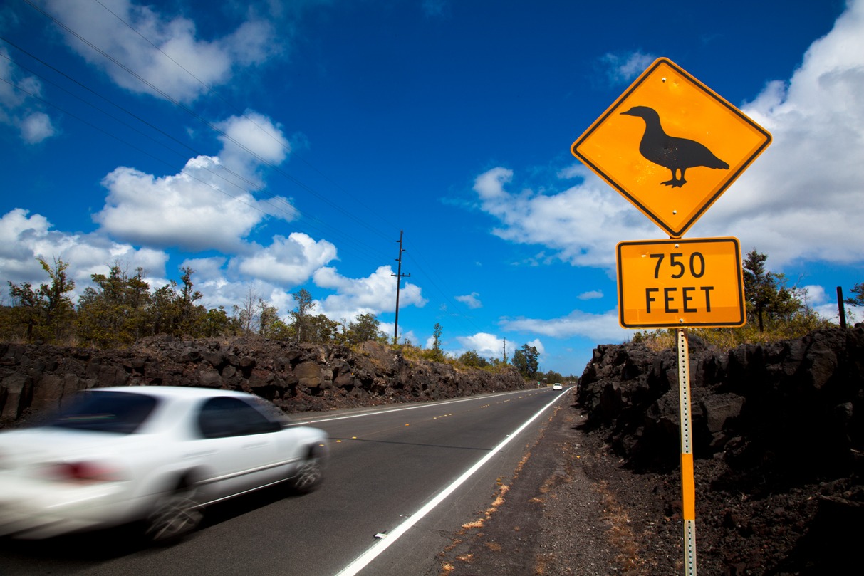 野生動物の飛び出しに注意が必要なエリア。ハワイらしいですね。